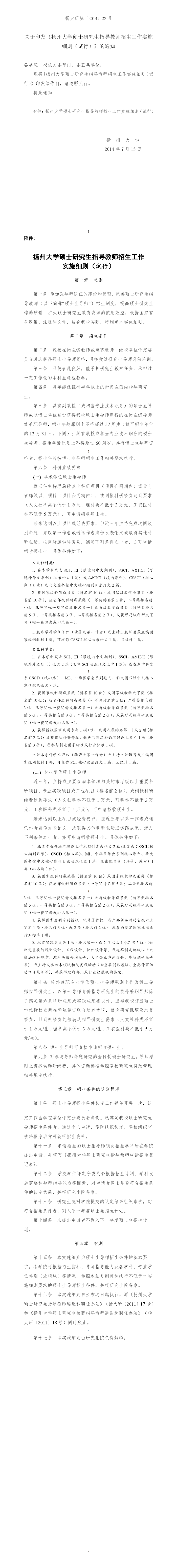 扬州大学硕士研究生指导教师招生工作实施细则(试行)