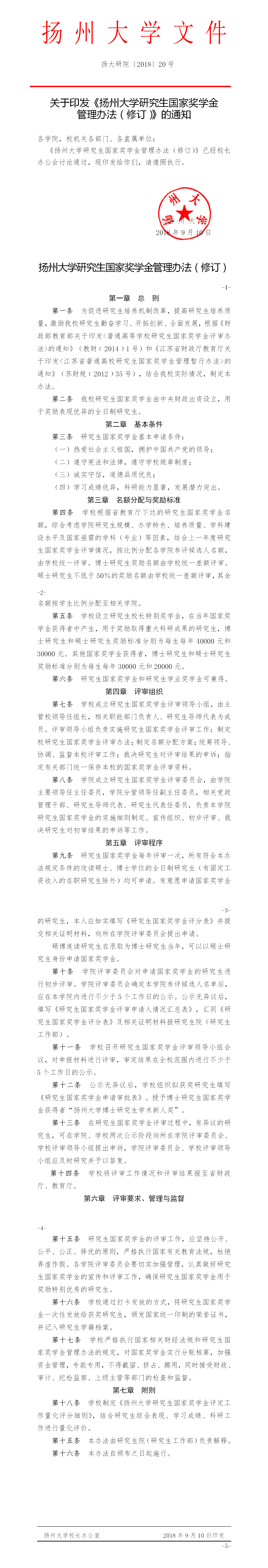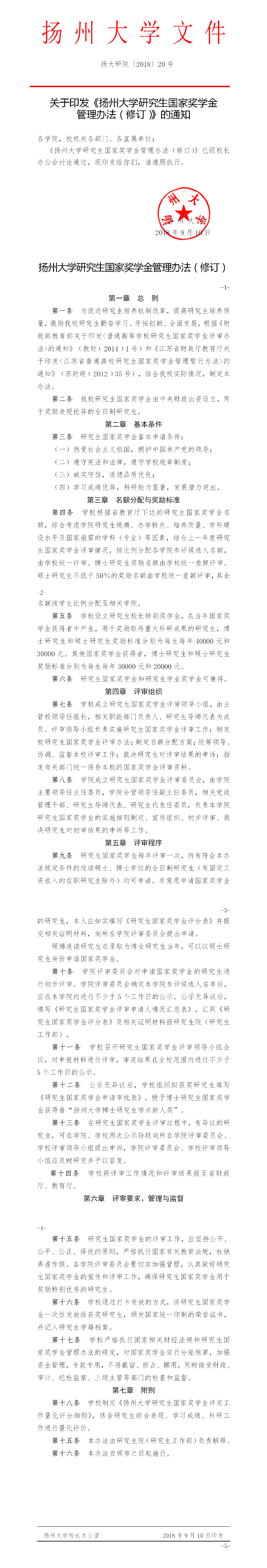 扬州大学研究生国家奖学金管理办法(修订)