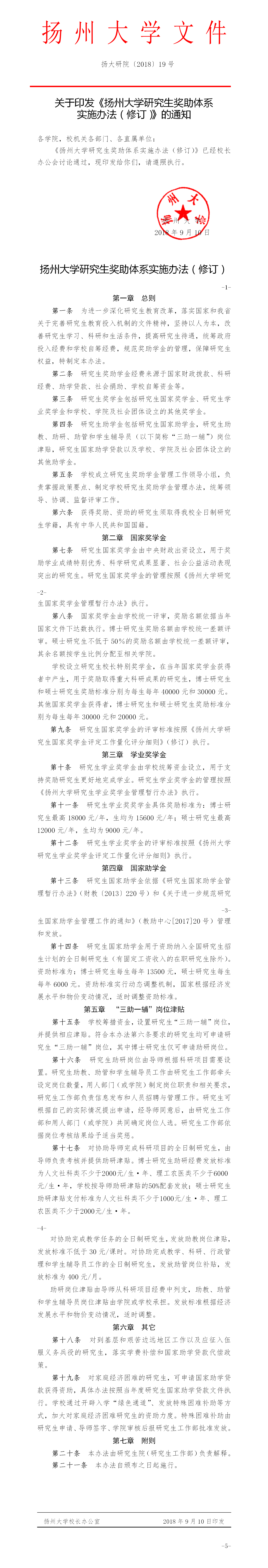 扬州大学研究生奖助体系实施办法(修订)