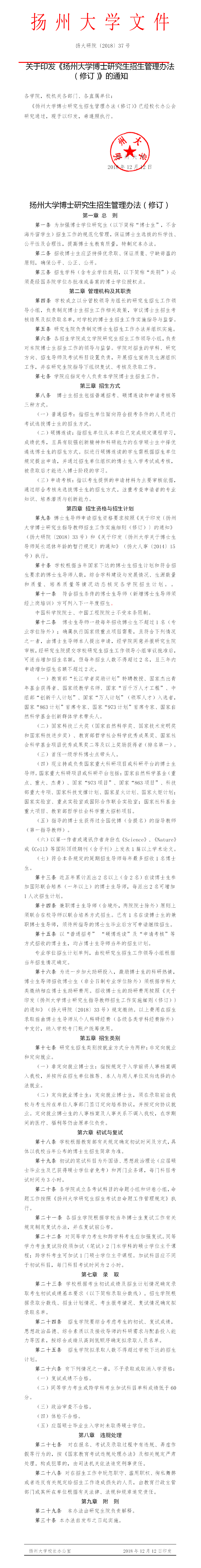 扬州大学博士研究生招生管理办法(修订)