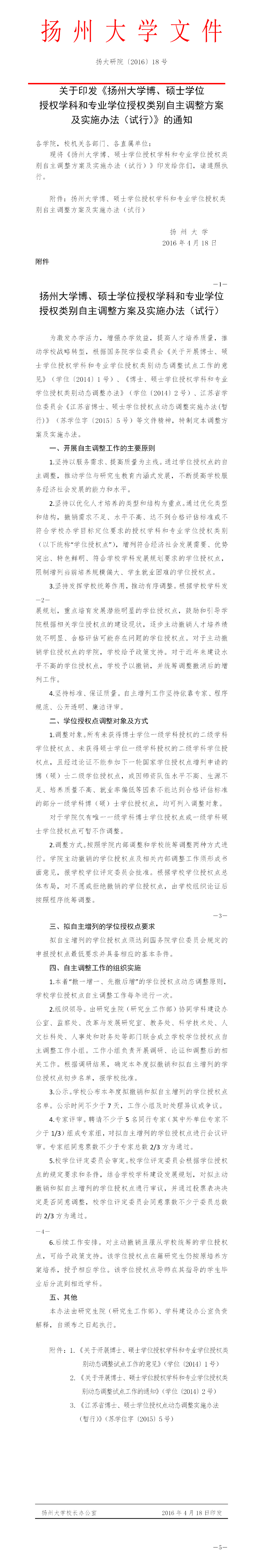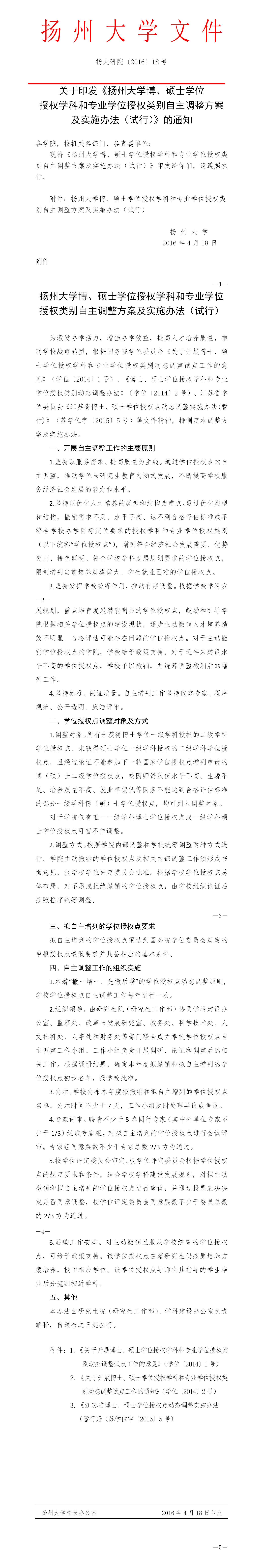 扬州大学博、硕士学位授权学科和专业学位授权类别自主调整方案及实施办法(试行)