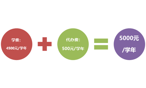 学费按学生录取当年省教育厅、省物价局公布的收费标准执行,按学年收取;代办费(含书费)每生每学年预收500元,按实收取,毕业时多退少补:
