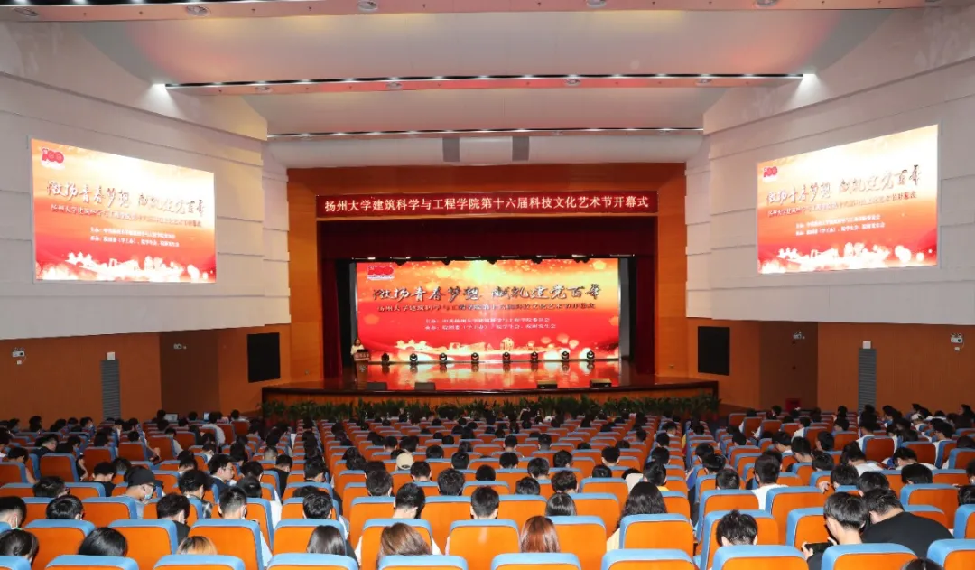 2021年5月29日下午3:00,学院在扬子津校区文体馆三楼报告厅隆重举行了第十六届科技文化艺术节开幕式。院党委书记贡福海老师、院党委副书记王志健老师,副院长兼交通工程系系主任邓社军老师,土木工程系系主任李琮琦老师,工程管理系科研主任张兵老师,建筑系教学主任马鑫老师,院团委兼职副书记杜超凡老师、龚泳帆老师,2019级,2020级班主任,全体辅导员,2019级,2020级全体本科生,2020级研究生参加本次开幕式,开幕式由院团委书记田甜老师主持。