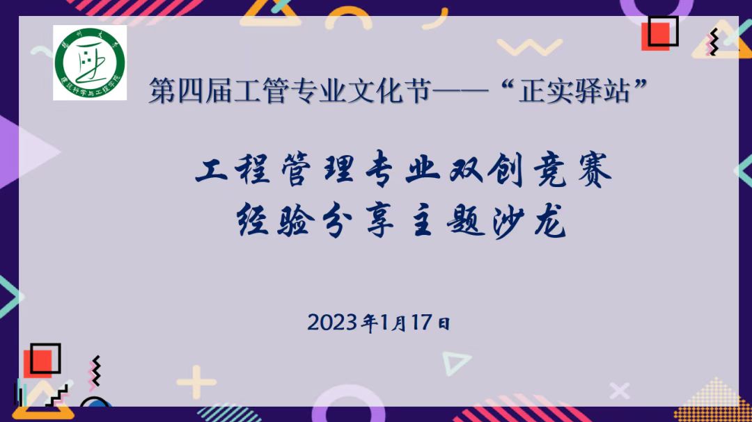 近期,学院线上开展了“正实驿站”工程管理双创竞赛经验分享主题沙龙,辅导员王国静老师、工管系张斌老师和2021级、2022级全体工管系本科生参加活动。