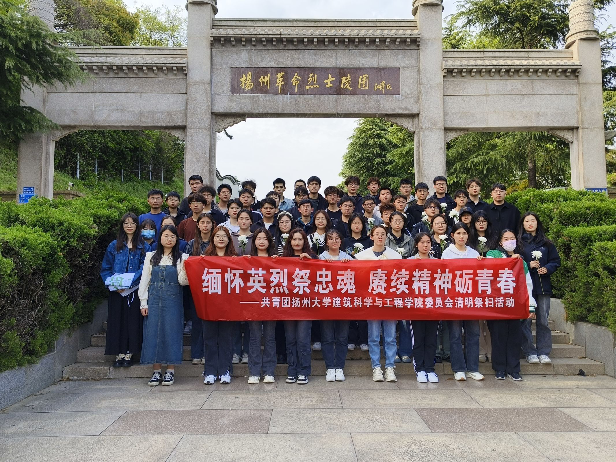 为缅怀革命先烈,祭奠烈士英灵,接受革命洗礼,教育引导学生继承先烈遗志,厚植爱党爱国情怀,弘扬爱国主义精神,4月10日下午,院团委工作中心联合院学生会组织带领土木2204、交通2201、工管2201、工管2202、交通2301五个团支部赴扬州革命烈士陵园,开展“缅怀英烈祭忠魂,赓续精神砺青春”清明祭扫活动。