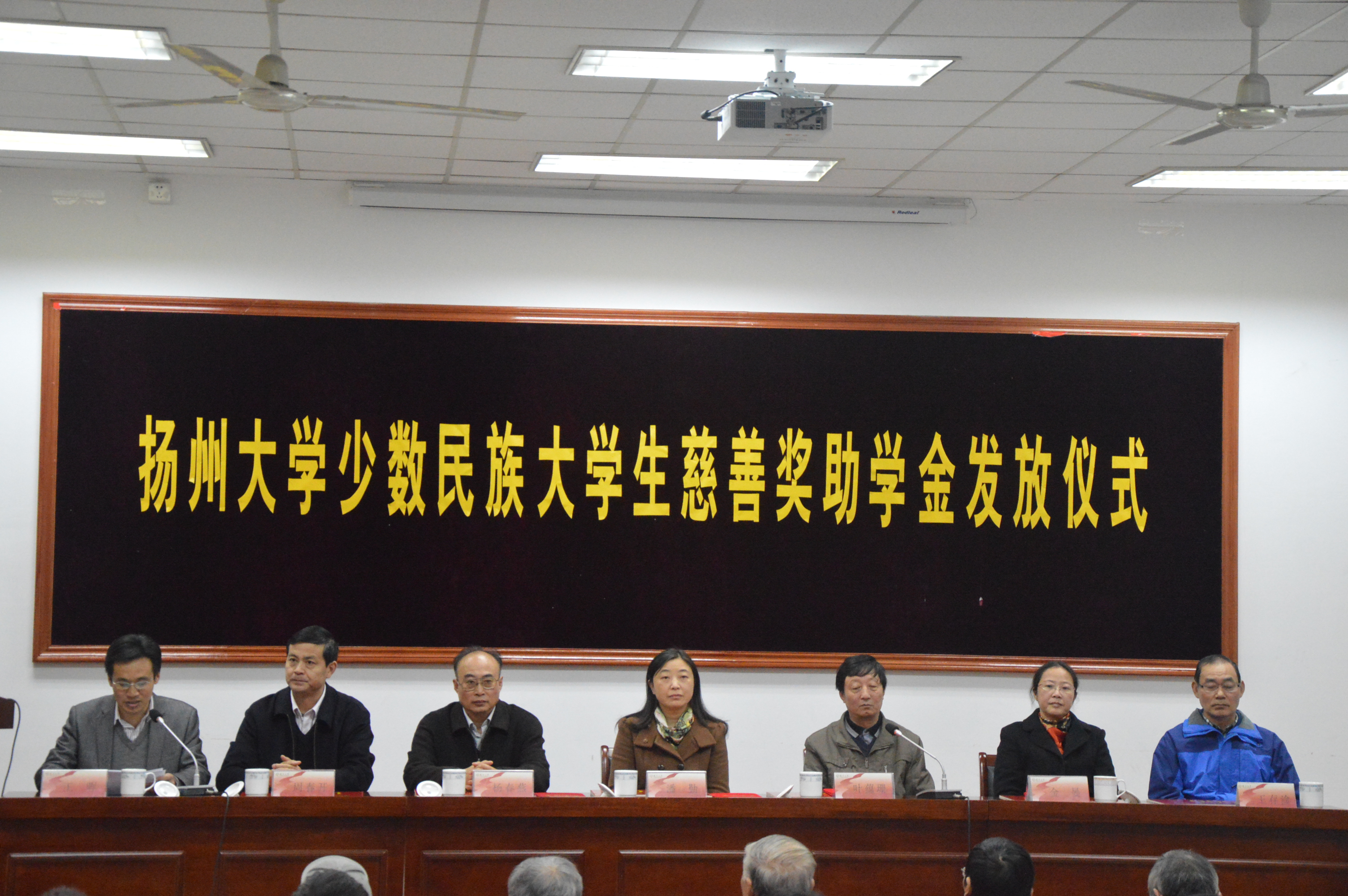 11月26日下午,扬州大学少数民族大学生慈善奖助学金发放仪式在我院102报告厅隆重举行。扬州市慈善总会常务副秘书长潘勤女士,校关工委常务副主任叶蕴珊老师,校离退休工委、校学生处、校工会、相关学院负责领导、老师,少数民族学生代表等一百余人参加。我院党委王晖副书记主持仪式。