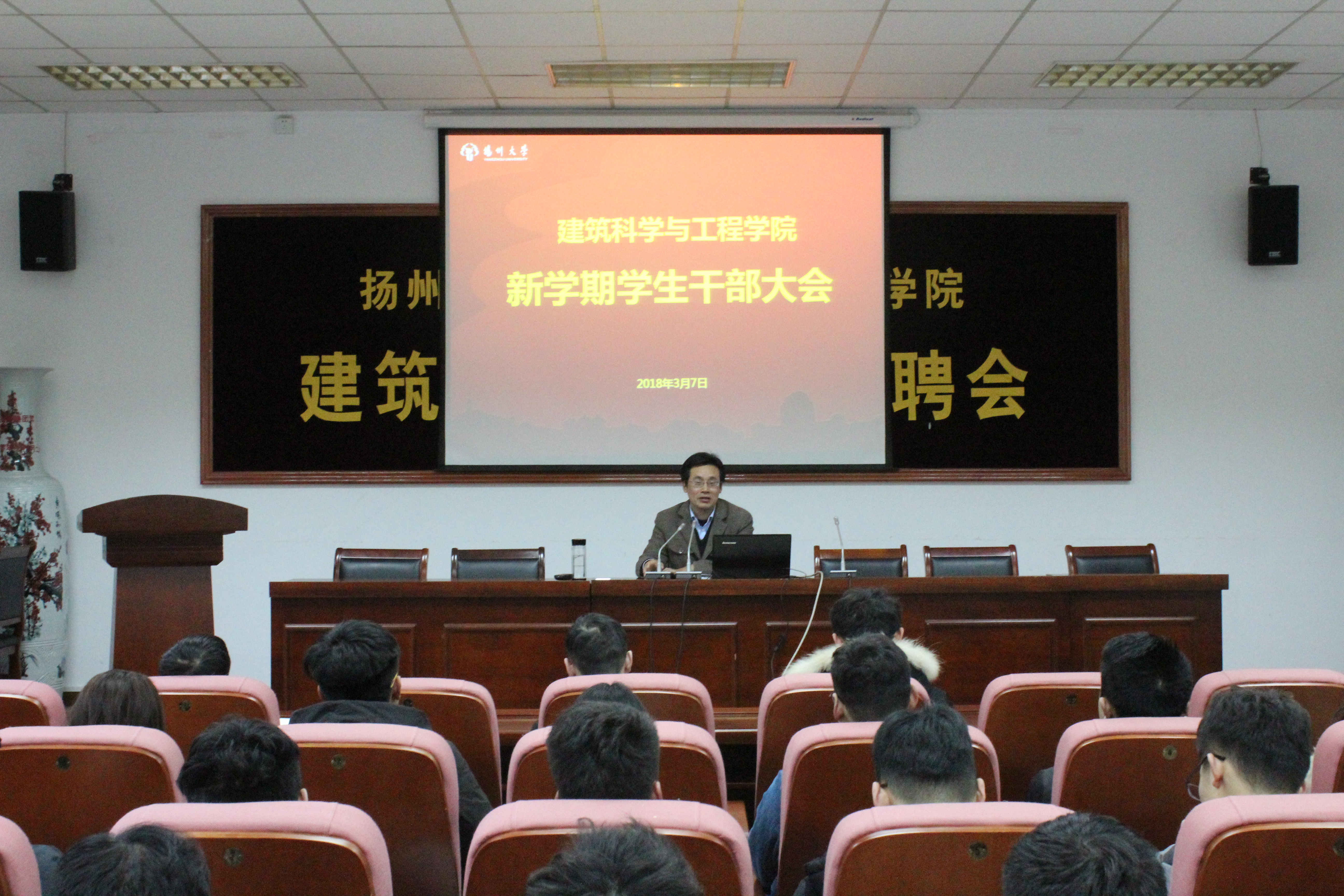 3月7日下午,我院于S1-102报告厅召开新学期学生干部会议。本次会议由院党委副书记王晖老师主讲,学院“五会”学生干部及各班班长团支书参加了会议。会议旨在布置安排学期初各项工作、增强学生干部的使命感与责任感,发挥学生干部的先锋带头作用。