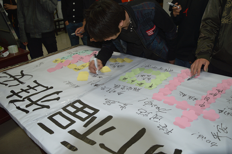 祈福现场,《假如爱有天意》这首歌一直诉说着雅安的痛苦,记者看到路过的同学们都纷纷在祈福板上写下祝福并自发向心形烛光处汇聚为雅安祈福。“作为一名在校大学生,由于种种条件的限制,我们不能奔赴现场,但灾难面前,大爱无距离,我们依然可以用心让他们聆听到我们最真挚的祈祷,祈祷雅安的同胞尽快脱险,祈祷我们的山河尽快安宁,祈祷我们的祖国不再遭受无谓的磨难!”院学生会主席徐晨说。