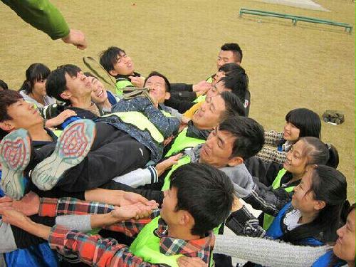 上午九点半,素质拓展开始拉开帷幕。首先是“破冰”项目,以“龙头龙尾”游戏开场,初步形成分队,使原本沉闷的气氛变得活跃。紧接着是“攀岩”、“生死电网”、“驿站传书”、“信任背摔”、“力量绳圈”等项目,同学们齐心协力,勇敢尝试,时不时还用响亮真挚的话语鼓励着身边的同伴突破一个个障碍、挑战一个个极限,在克服困难、不断挑战的过程中同学们更加明白了沟通、信任、团结的意义。夕阳的金色光辉下,同学们顺利完成了“毕业墙”挑战,给素质拓展活动划上了圆满的句号。