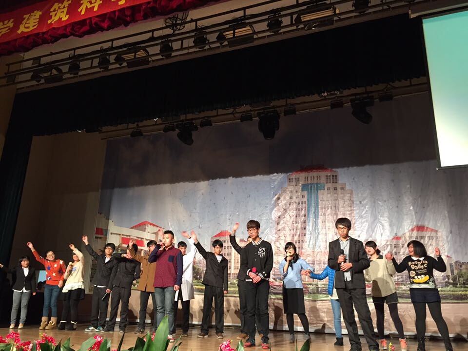 一首《相亲相爱》点燃了全场的热情,拉开了晚会的序幕。整场晚会表演形式多样,风格各异。话剧《匆匆岁月》简短地演绎了大学校园的精彩生活,引起了观众的共鸣。音乐剧《孤独班长》向我们讲述了班级的领头羊——班长的心路历程。相声《上课》由老搭档王郡驿和缪昌军实力出演,诙谐的语言、滑稽的对答令全场观众捧腹开怀。包文军和李少荃同学表演的舞蹈《山楂树之恋》营造出了唯美的气氛,赢来了观众的阵阵掌声。最后,土建1404班表演的舞蹈《dangerous》再次让全场气氛高涨。此外,互动环节中建学班提供的以 “DREAM”为主题的文化衫奖品也是晚会的亮点。