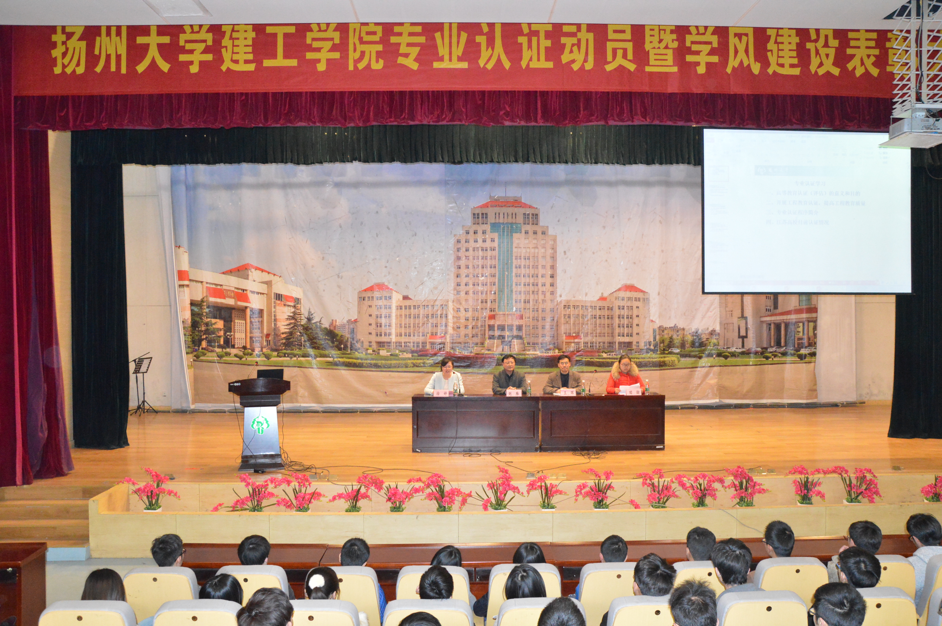3月25日下午,我院在昭文馆报告厅召开了专业认证动员暨学风建设表彰大会,学院副院长刘雁老师、党委副书记王晖老师、团委全体老师及2013、2014级所有同学参加了会议。