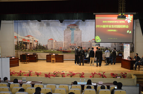 11月12日下午,我院在扬子津校区昭文馆报告厅成功举办了“2016届毕业生(秋季专场)校园招聘会”。来自江苏省华建建设股份有限公司、江苏邗建集团有限公司、江苏江南路桥工程有限公司、苏州金螳螂建筑装饰股份有限公司、江苏江都建设集团有限公司、正太集团等多家知名企业来到现场招聘,共为我院毕业生提供了百余个就业岗位。