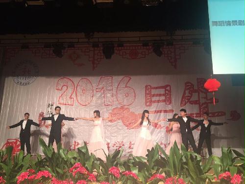 12月29日晚,由我院团委主办,社联承办的“旦·生”2016年元旦晚会暨社联十周年庆典活动在昭文馆报告厅举行。院团委书记田甜老师、院实验中心副主任朱卫东老师、院团委副书记徐婷老师、辅导员高福营老师、荣昆老师出席本次晚会,2015级同学观看了晚会。