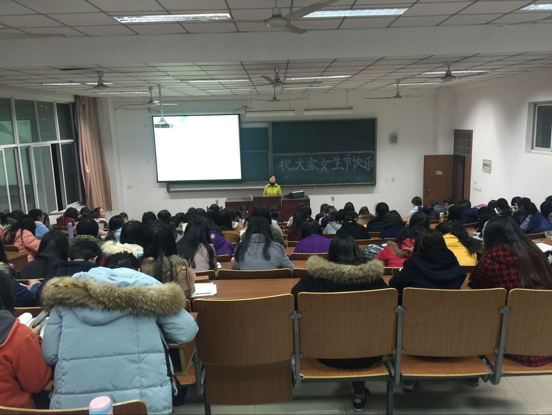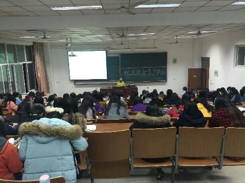3月7日晚,我院团委在扬子津西校区4号楼213教室成功举办了一场题为 “爱自己 爱生活”的女生节专题讲座。此次讲座特别邀请了校心理健康教育中心副主任周敏老师担任主讲,2014级、2015级女生聆听了此次讲座,院团委副书记徐婷老师主持讲座。