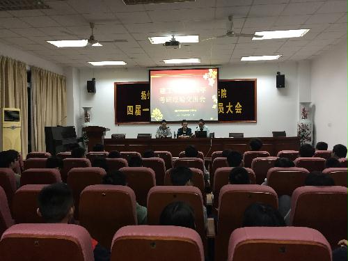4月14日至4月21日,我院分专业举办了考研经验交流会。会议特别邀请了2012级胡东康、谢珂、张凯、杨盼盼、王小锁、朱治文、杨峰、朱剑文等拥有不同考研经历的同学与低年级同学分享了自己的考研历程。