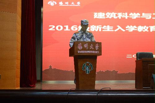 院党委王晖副书记重点强调了大学生军训的意义,同时就做好本次军训工作提出了几点要求。他希望同学们严格遵守纪律,听从指挥;尊重教官,虚心学习;严格要求,艰苦训练,以饱满的热情、旺盛的斗志、顽强的毅力、威武的军姿、恢弘的气势来展示建工学子奋发向上的精神风貌。