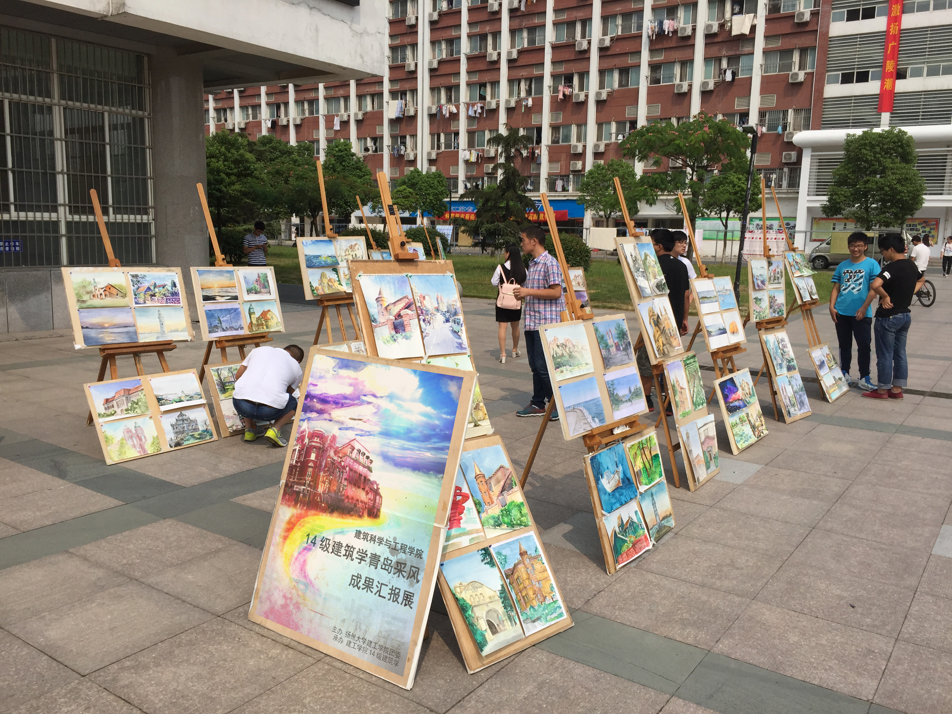 9月10日中午,由我院团委主办、建学14级承办的青岛采风水彩成果展在扬子津西校区食堂广场成功举办。