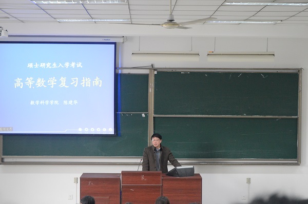 数学科学学院陈健华老师为大家介绍了高数的复习方法。他提到,复习考研要制定严密的全程复习规划,抓住考题特点,扎实基础。之后,在此次考研中取得优异成绩的三位同学进行发言。他们分享了自己考研心得,呼吁大家把握时间高效学习,他们指出,考研复习很苦,大家要相互帮助,坚持到底。最后田甜老师分析了近几年我院学生考研的情况,为他们取得的优异成绩感到高兴,并希望同学们秉承“品正基实”的院训,往更高的目标努力发展。
