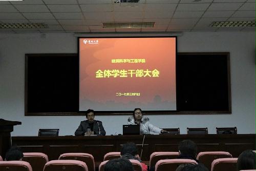 3月8日下午,我院在102报告厅召开了全体学生干部大会。院党委副书记王晖、院团委书记田甜出席了本次会议,学院全体学生干部参加。