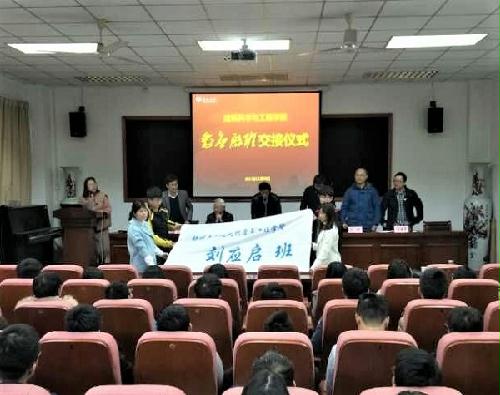 11月30日下午,学院“刘应启班”换届交接仪式于S1-102报告厅举行。出席本次仪式的老师有院党委顾建国书记、院党委王晖副书记、校关工委办公室刘方云主任、路南校区关工委王宝圣主任、校关工委理论宣传组杨诚芳老师、院团委田甜书记,首届“刘应启班”班主任高福营,第二届“刘应启班”班主任张斌以及两届“刘应启班”全体同学参加了会议。