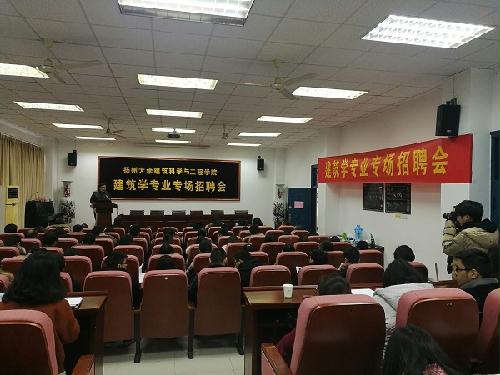 1月12日下午,我院于S1-102报告厅举办建筑学专业专场招聘会。本次招聘会共有来自江苏、上海的14家建筑设计单位参加,提供了近百个就业和实习岗位。建工学院建筑学专业张伟主任,院团委高福营老师以及建筑学专业2013级、2014级全体学生参加了招聘会。