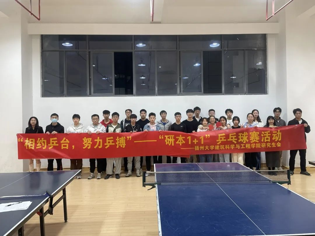 青年强,则国强。为了响应二十大对青年人的号召,强健同学们的体魄,丰富同学们的课余生活,促进本科生与研究生之间的友好交流,扬州大学建筑科学与工程学院研究生会于2022年11月5日在扬子津文体馆WE301乒乓球室举办了“相约乒台,努力乒搏”——“研本1+1”乒乓球比赛。