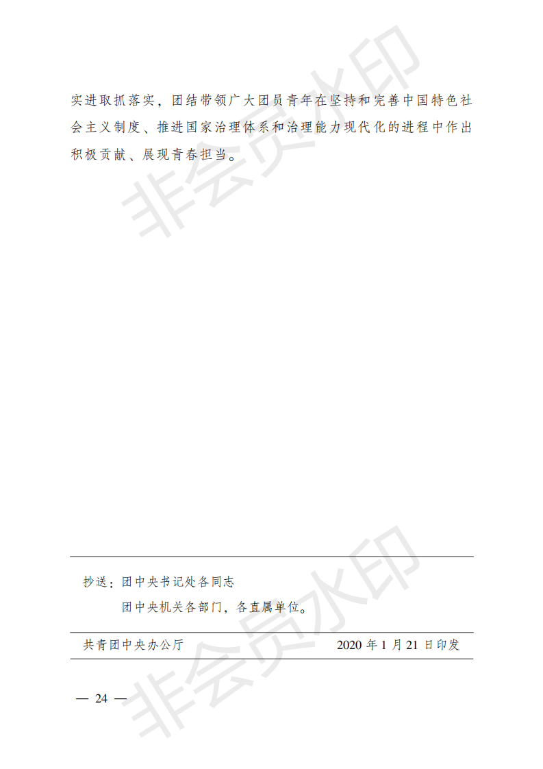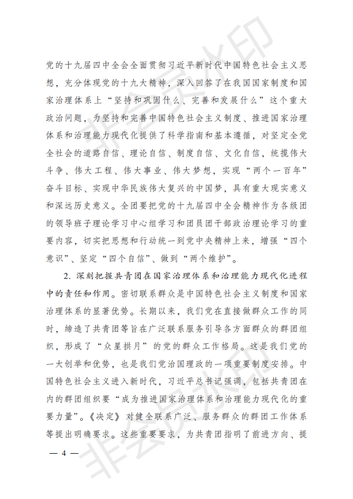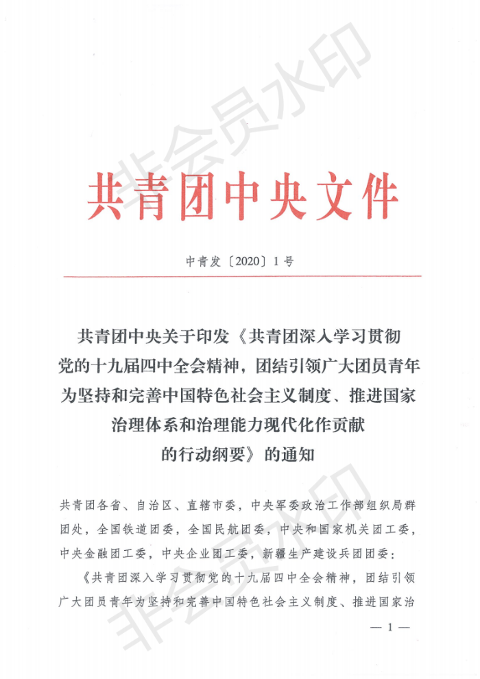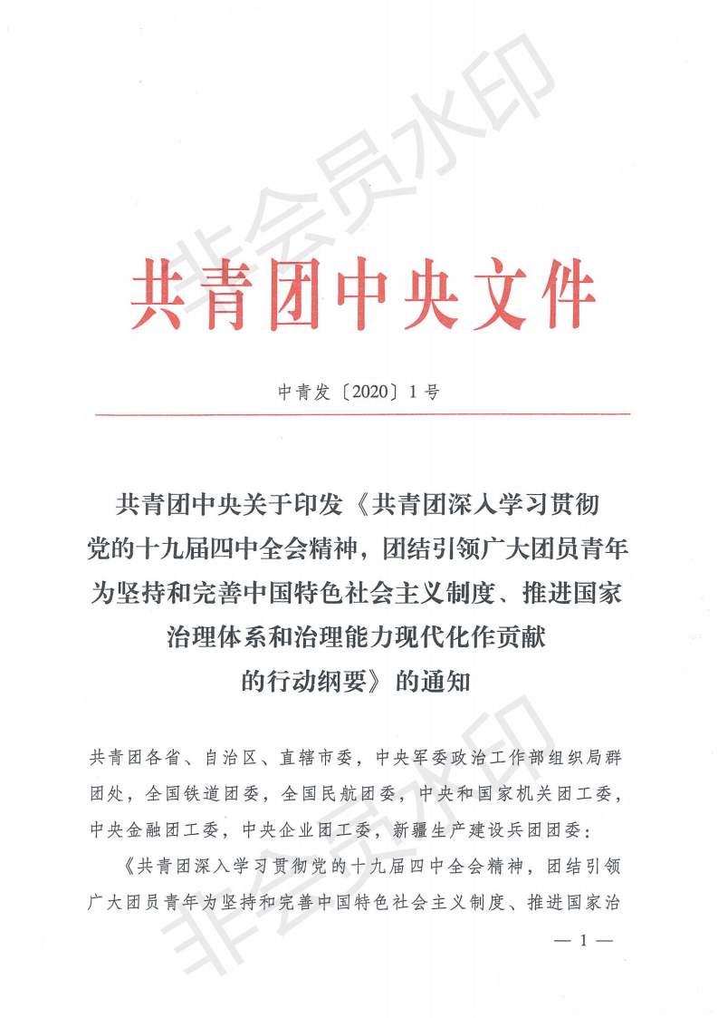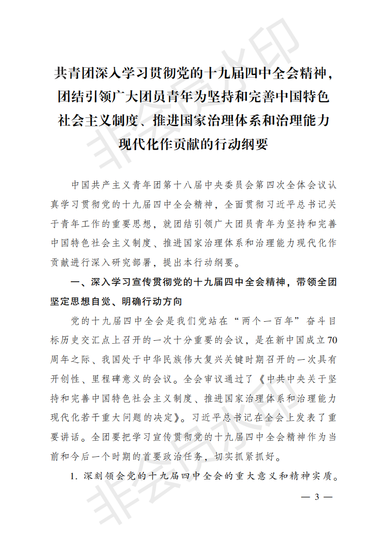 共青团中央关于印发《共青团深入学习贯彻党的十九届四中全会精神,团结引领广大团员青年为坚持和完善中国特色社会主义制度、推进国家治理体系和治理能力现代化作贡献的行动纲要》的