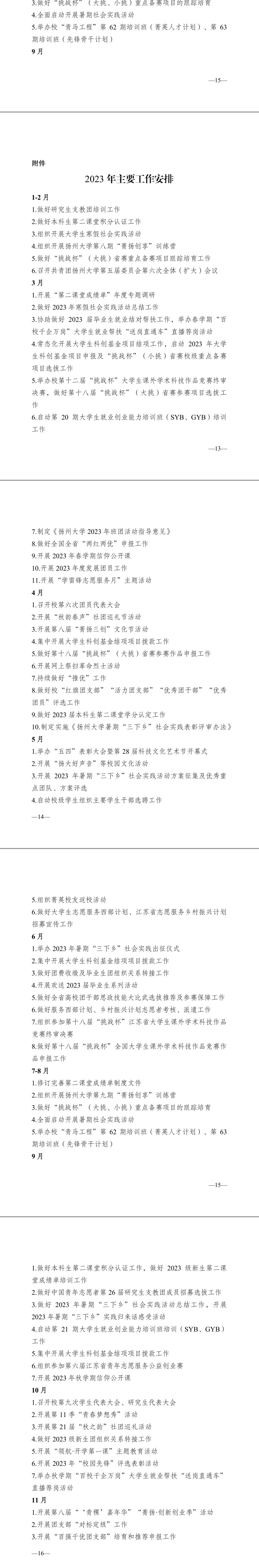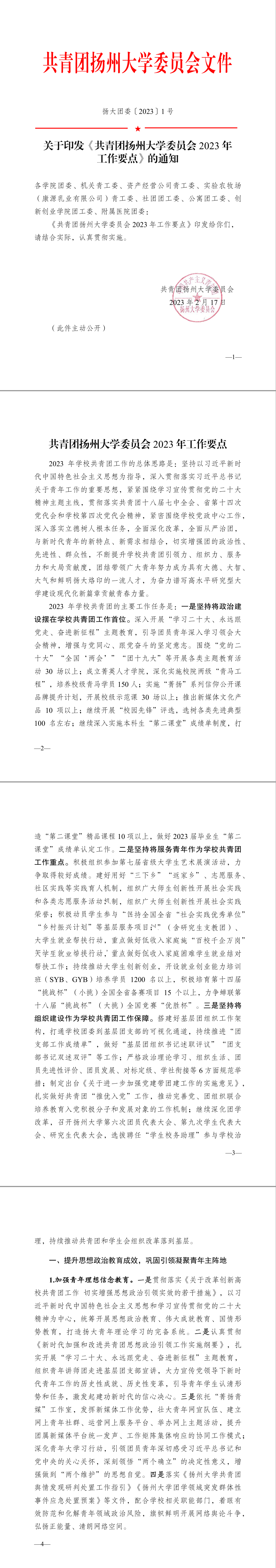 关于印发《共青团扬州大学委员会2023年工作要点》的通知