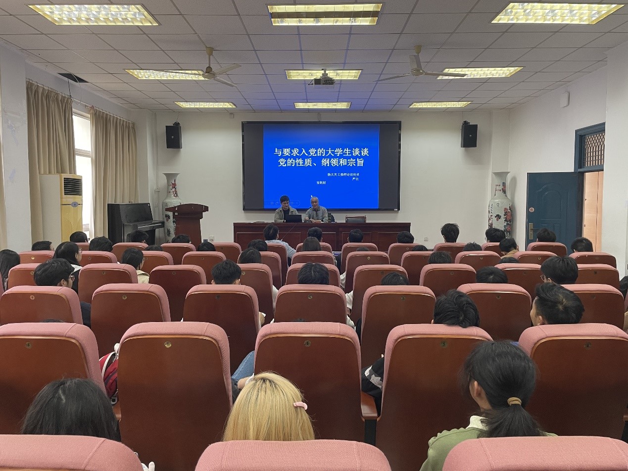 为响应新时代号召,帮助广大青年树立理想信念,宣传党的相关理论知识,4月25日下午,建工学院分党校在建工学院1号楼102报告厅举行2024年发展对象和入党积极分子集中培训专题讲座。校关工委理论宣传组(讲师团)严公宝教授为学员们做题为《与要求入党的大学生谈谈党的性质、纲领和宗旨》。会议由土木工程系学生党支部书记黄晓主持。