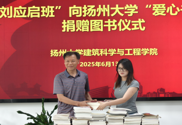 活动现场举行了主题征文颁奖仪式,赵志新、陈红老师为二等奖获得者颁奖,王宝圣、陈翱翔老师为一等奖获得者颁奖,表彰同学们以笔书写英雄事迹的创作成果。“刘应启班” 结对共建指导老师刘方云在活动总结中强调,读书征文活动不仅是对英雄精神的传承,更是青年学子锤炼品格的重要实践。随后,“刘应启班” 学生代表姜淼向扬州大学 “爱心书屋” 捐赠图书,校关工委扬子津校区联络站站长刘军接收,以实际行动传递知识与希望。