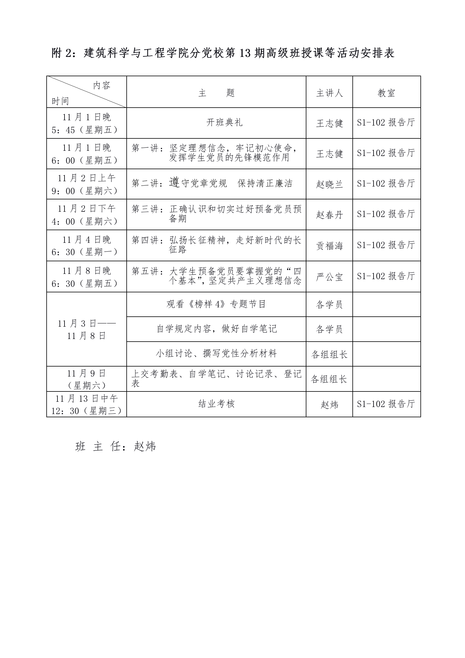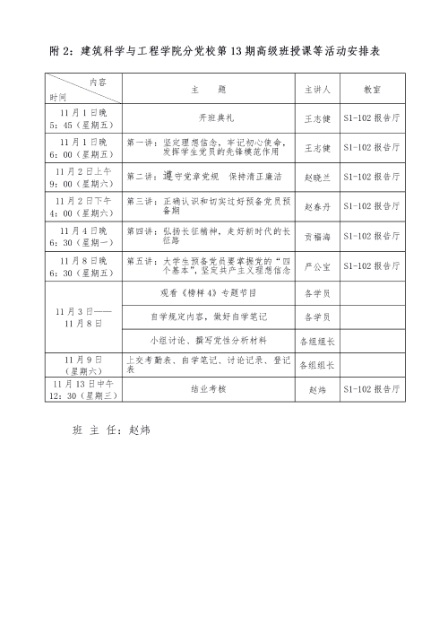 2、分党校授课等活动安排表;