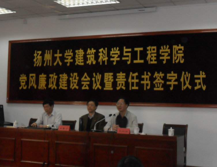 5月4日下午,建筑学院举行党风廉政建设会议暨责任书签字仪式,全体教职工参加了本次会议。校纪委王鲁宁副书记应邀在会上做了“牢记党的宗旨,践行两个务必”的报告。报告结束后,按照学院党风廉政责任制网络,责任人与责任对象签订了党风廉政建设责任书。最后院党委卜书记向大家提出了三点要求,一是加强学习,坚定信念;二是严格自律,率先垂范;三是强化监督,兑现承诺。