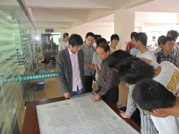 仪式上,铭城设计院夏伯宏院长介绍了公司的情况,副院长刘雁教授介绍了学校、学院现状,在铭城公司工作的我院毕业生介绍了他们的工作及生活情况,随后双方签订了实习基地协议书,并给实习基地挂牌。随后,学院师生参观了设计院,并就自己感兴趣的问题和设计院员工进行了交流。