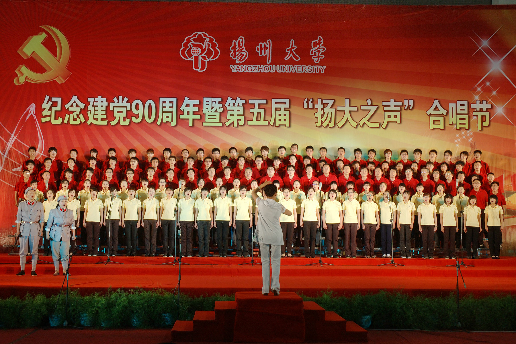 经过一个多月来师生的不懈努力,学院合唱队在指挥杨华老师的带领下,荣获第五届“扬大之声”合唱节大合唱比赛三等奖。