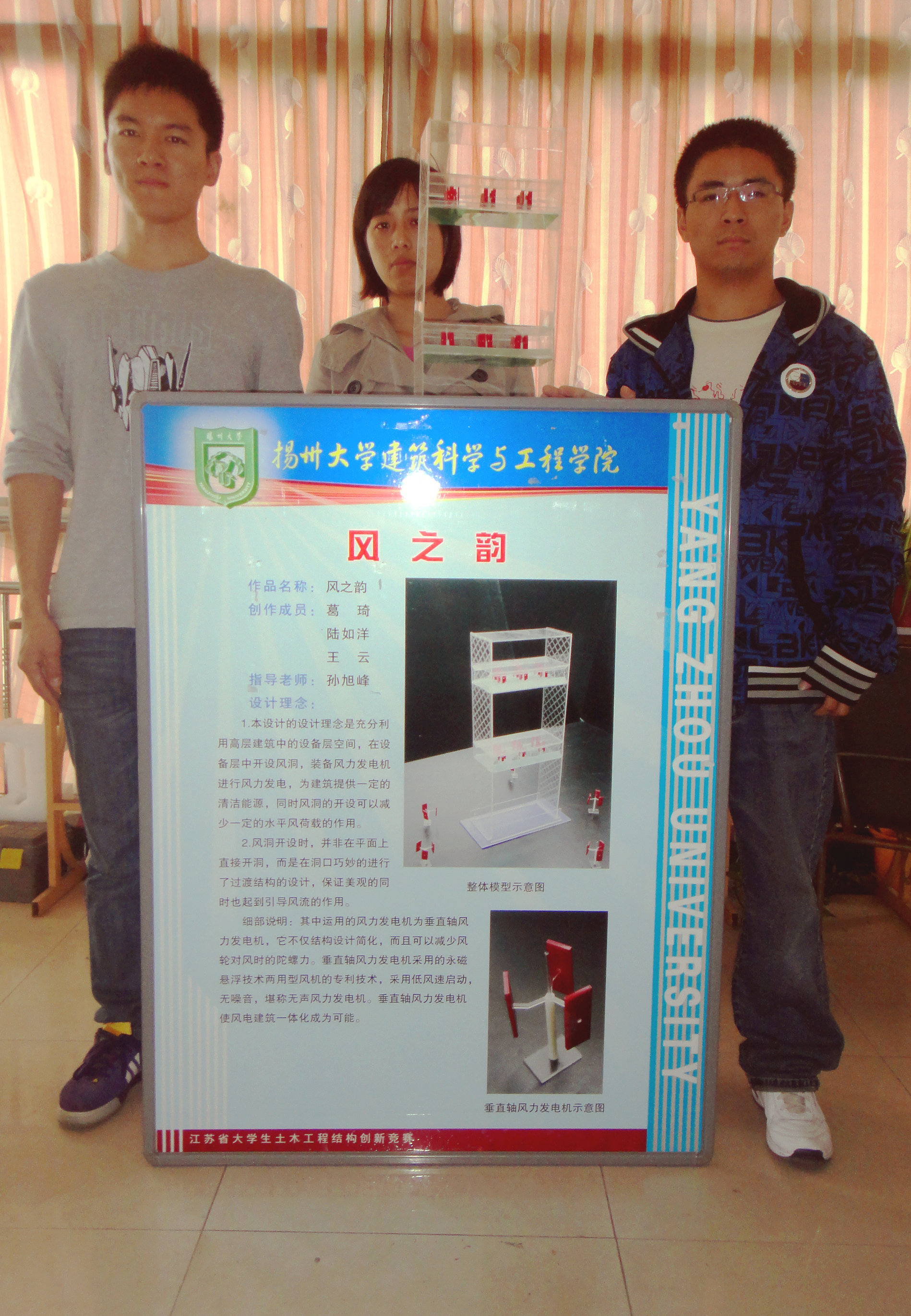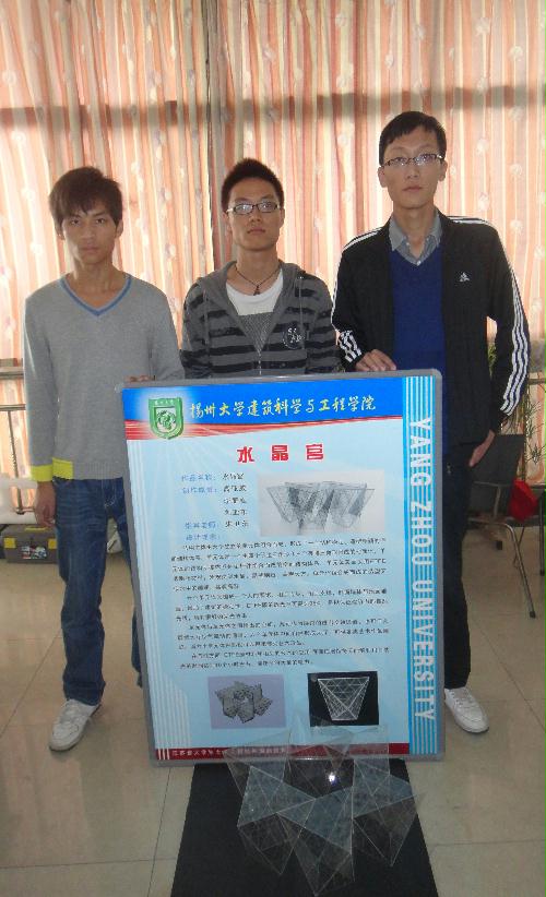 10月29日,中国土木工程学会教育工作委员会江苏分会举办的“2011年江苏省大学生土木工程结构创新竞赛”在南京工程学院举行,共有20多所院校60件作品参赛,九位评委中包括我省高等学校教授和省工程设计领域的专家,我院在比赛中获得佳绩。由郭红霞老师指导的,李峰、穆冠霖、赵世杰三位同学设计制作的参赛作品“童年梦想——手工博物馆”获得一等奖第一名的好成绩;由朱卫东老师指导的,高亚威、李鹏程、刘亚东三位同学设计制作的参赛作品“水晶宫——现代艺术展馆”获得二等奖;由孙旭峰老师指导的,葛琦,陆如洋,王云三位同学设计制作的参赛作品“风之韵——风能建筑”获得优胜奖。