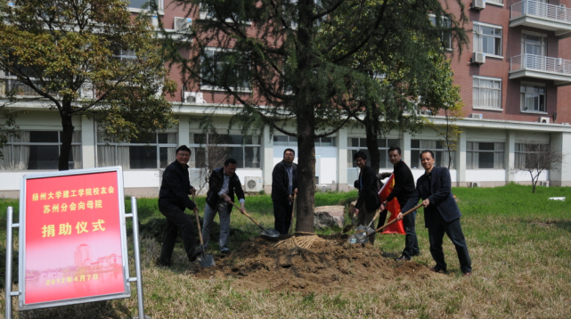 2012年4月7日,扬州大学苏州校友会建工分会毛军平会长一行代表苏州建工分会向学院赠送雪松,该活动是苏州校友会向学院捐助系列活动之一。