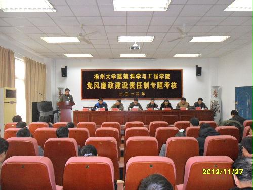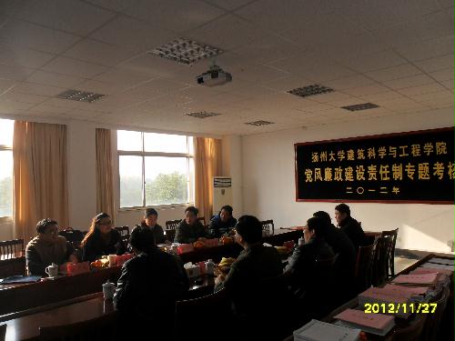 我院50余名教职员工参加了测评会议。首先,叶柏森副校长进行了动员讲话,随后院党委卜以江书记代表本届班子进行了党风廉政建设责任制工作的自查报告,五位院领导也各自将本届任期以来的党风廉政建设责任制工作的相关情况进行了报告。报告之后,在场的教职员工对领导班子和五位领导进行了测评打分。测评完毕后,按照工作小组指定的名单,工作小组分组对院领导、院教职工代表进行了个别谈话和座谈,以进一步深入地了解学院党风廉政建设责任制工作的相关情况。