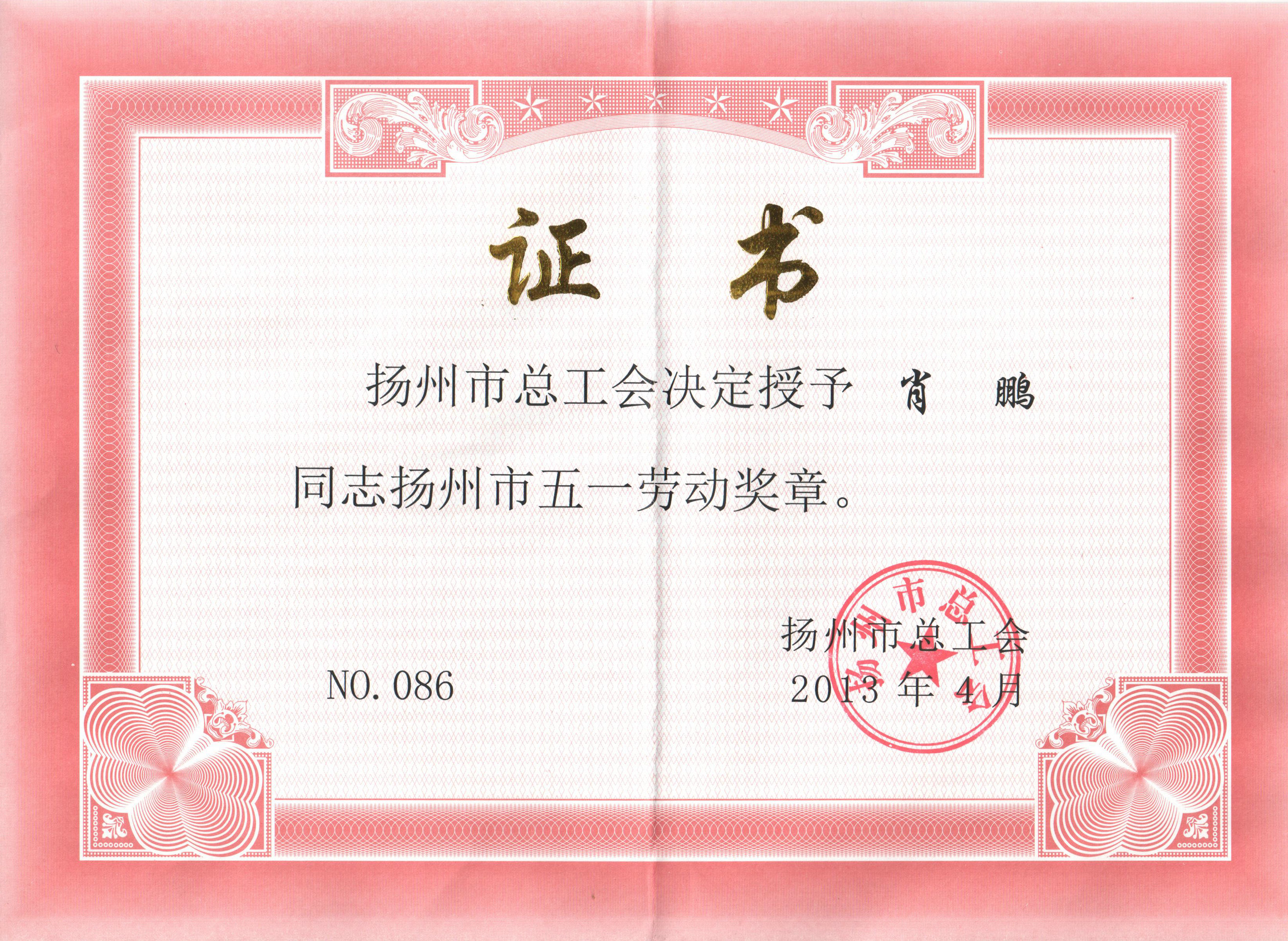 4月26日下午,扬州市在工人文化宫召开庆“五一”建功立业表彰大会,表彰全市各行各业、各条战线上涌现出来的全国、省、市五一劳动奖状、五一劳动奖章获得者。我院院长肖鹏教授获扬州市五一劳动奖章,并在会上接受扬州市相关领导的颁奖。