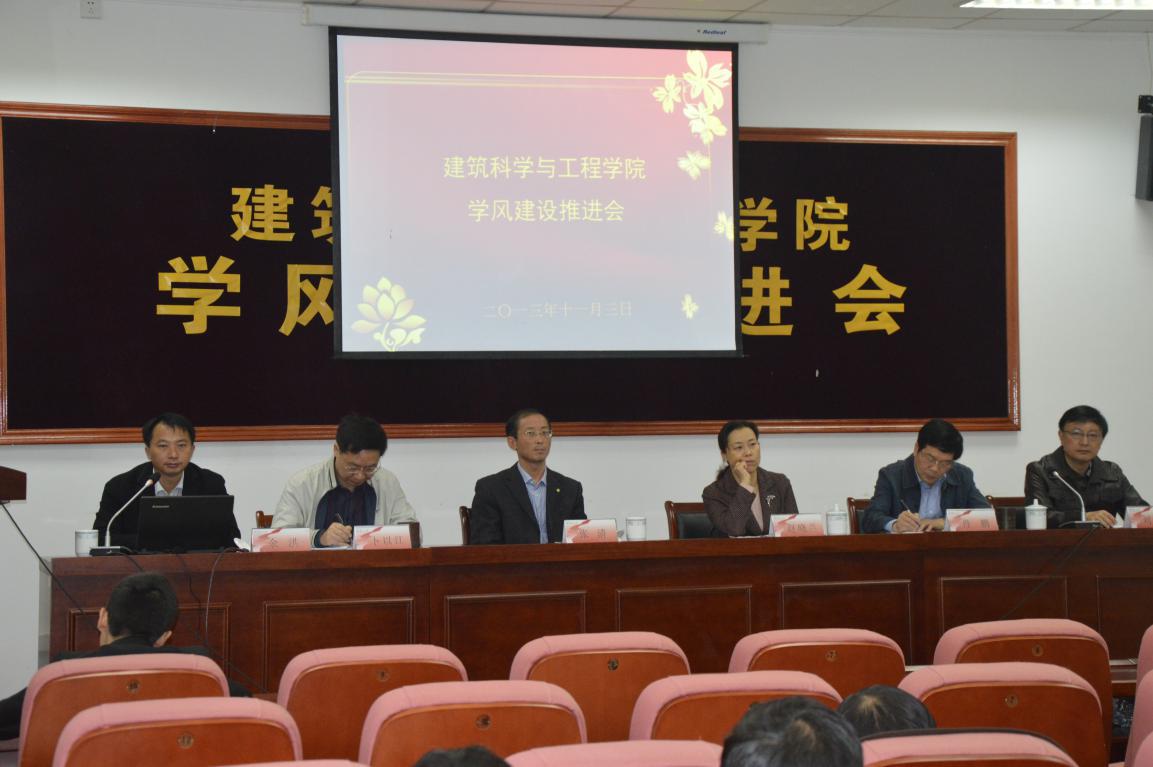2013年11月3日上午9点,建筑科学与工程学院在院1号行政楼102报告厅召开了学风建设推进会。会议特别邀请了校教务处张清处长、校学生处赵晓兰副处长,全体院领导、各系相关老师、全体班主任、主要学生干部等也都参加了当天会议。
