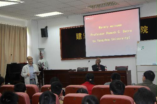 Batra教授曾分别于2010年和2011年两次访问扬州大学。曾被聘任为扬州大学兼职教授。