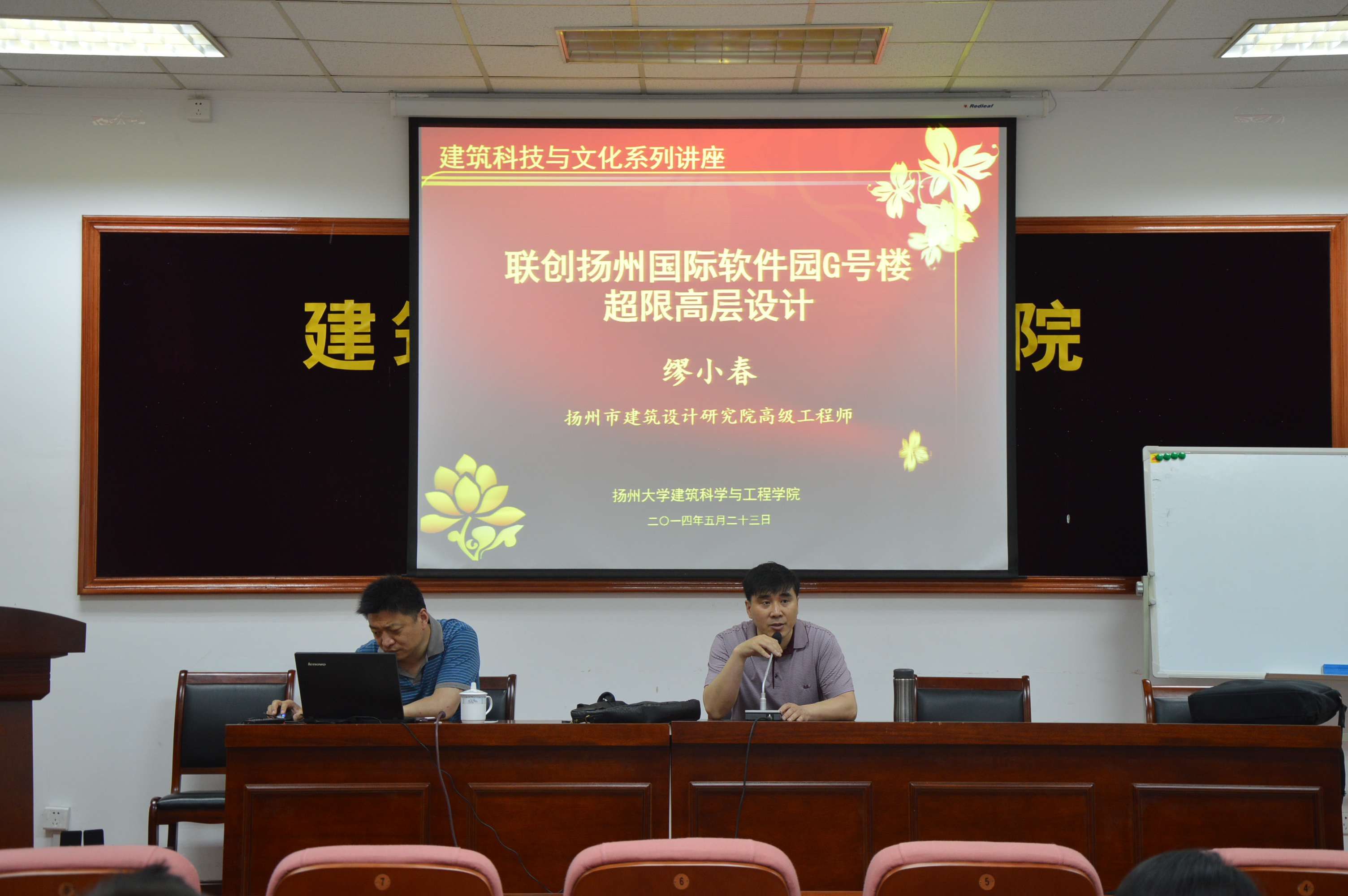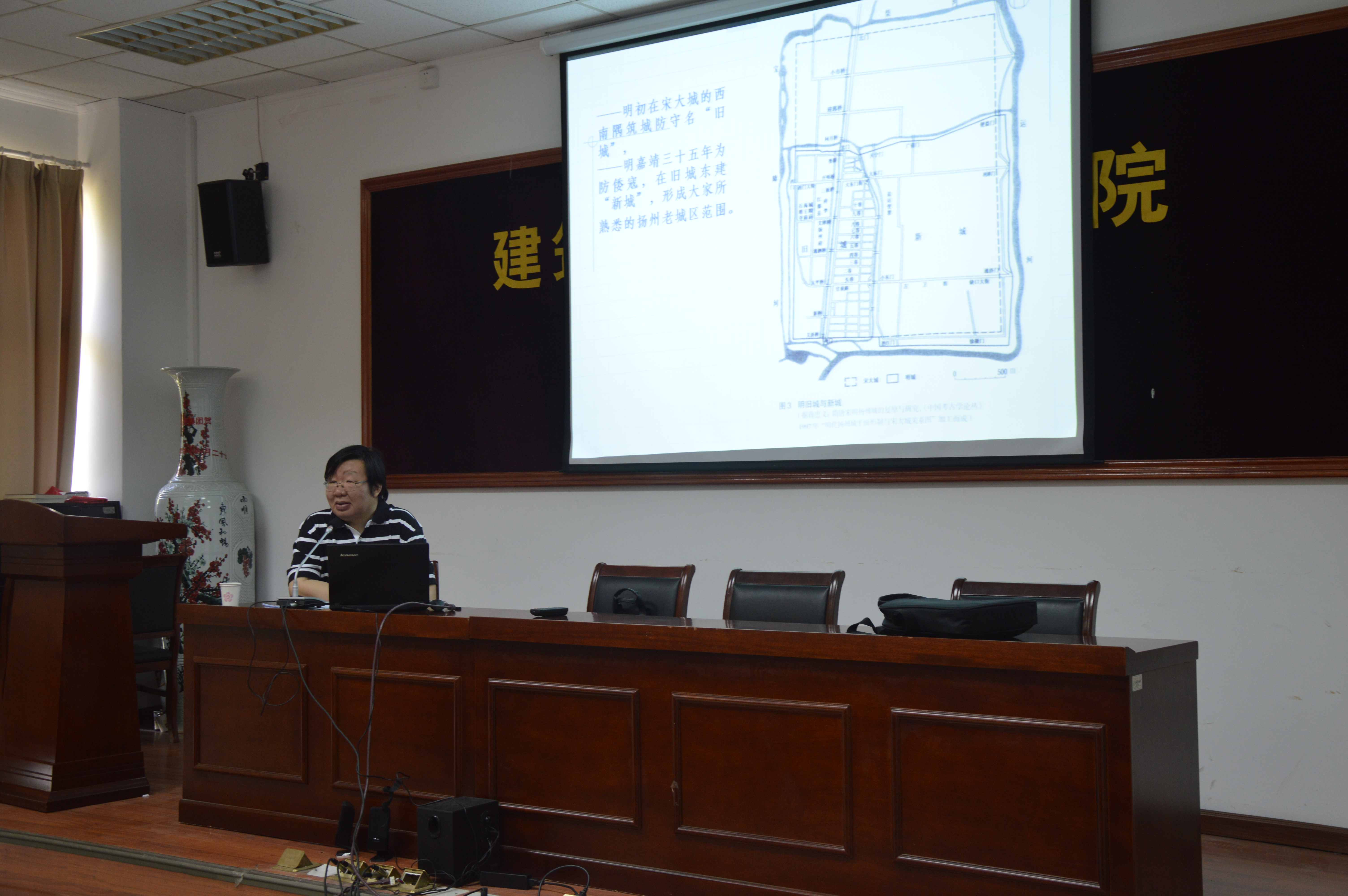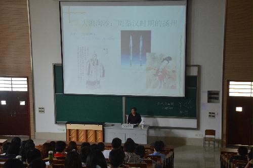 学院建筑系张伟主任以《古城扬州与扬州园林》为题,将扬州园林与苏州园林做了对比,分析了两者之间的异同,进而让同学们深入了解了扬州园林文化,了解了古城扬州。