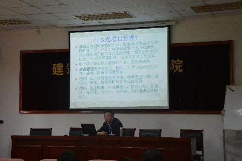江苏扬建集团总工邹厚存是教授级高工,他以《住建部2010版建筑业十项新技术》为题为同学们形象生动地讲述了目前模板、脚手架、钢筋、预应力、防水等十大项新技术的基本情况,让广大同学开拓了视野。