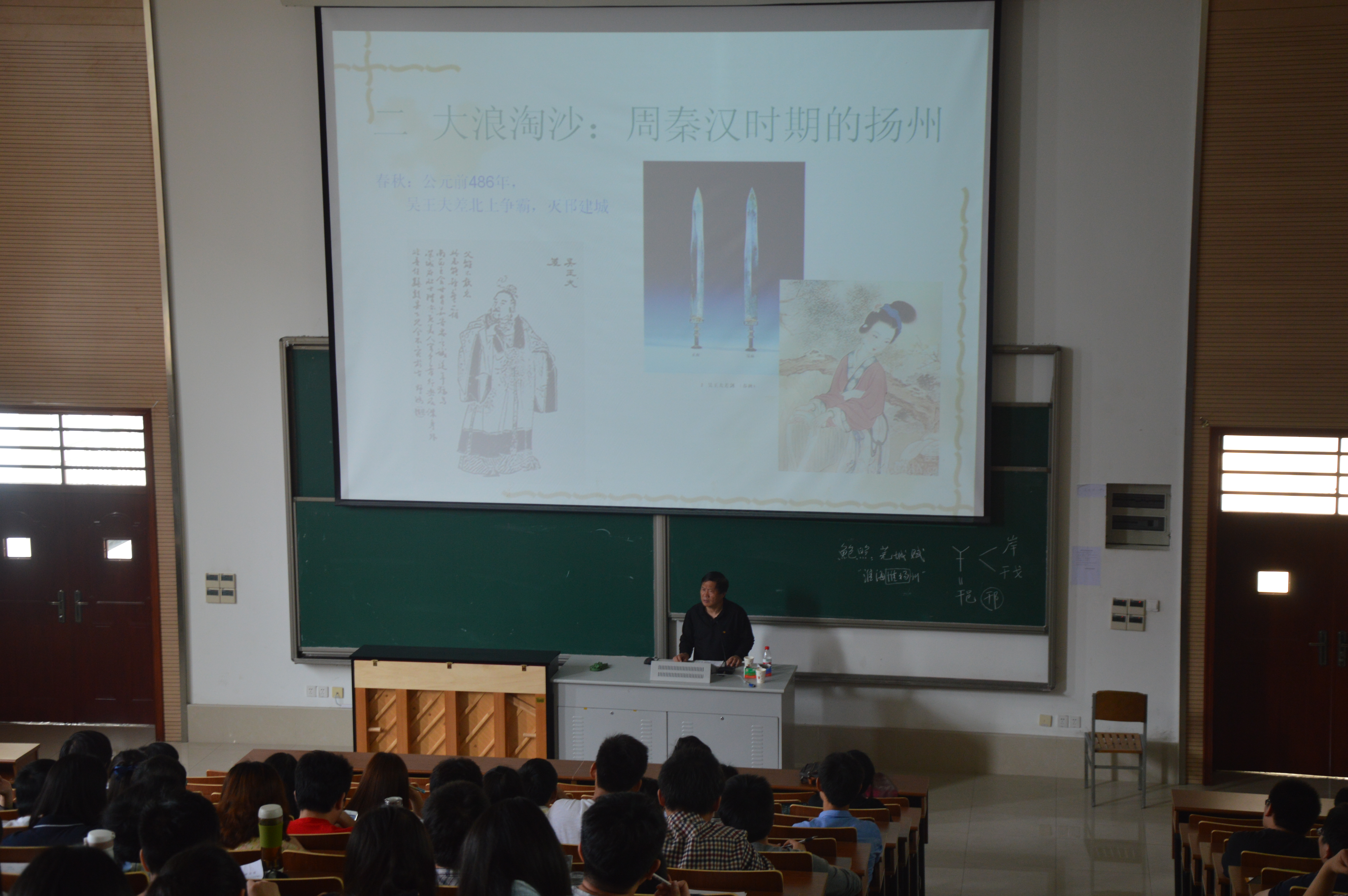 扬州文化学者韦明铧以《扬州历史文化》为题,用历史故事的形式为同学们讲述了扬州城2500年的兴衰,阐述了扬州城历代的更替,介绍了扬州市花、市树的由来等等。精彩的文化讲座让同学们对扬州城深厚的历史文化底蕴惊叹不已。