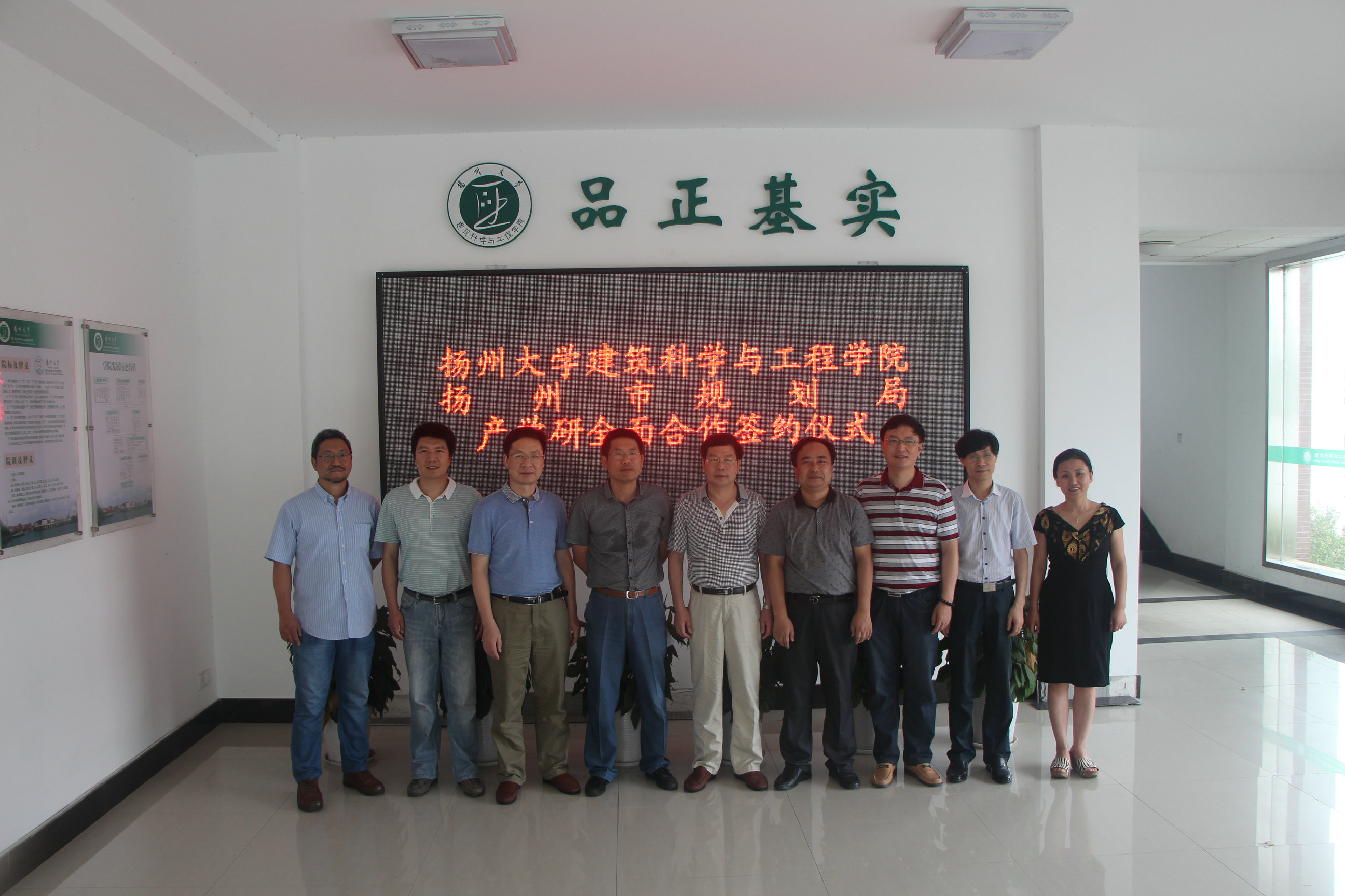 近日,扬州大学建筑科学与工程学院-扬州市规划局产学研全面合作签约仪式在我院举行,扬州市规划局刘雨平总规划师与我院院长肖鹏教授代表双方单位签字,规划局编制中心相关领导与全体院领导、相关科研团队负责人出席了签约仪式。