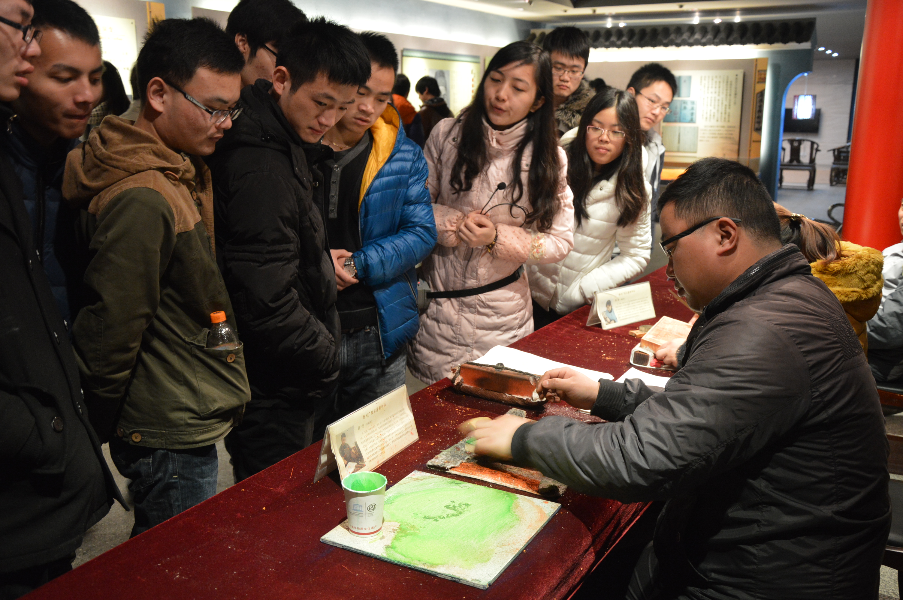 1月15日,同学们乘车来到广陵古籍刻印社,在这里刻印社的工作人员向同学们讲解了世界级“非遗”项目扬州雕版印刷的艺术文化,并为同学们展示了印刷的完整过程。通过对各种作品的欣赏及宣传视频的观看,同学们体会到了扬州雕版印刷的文化古韵。
