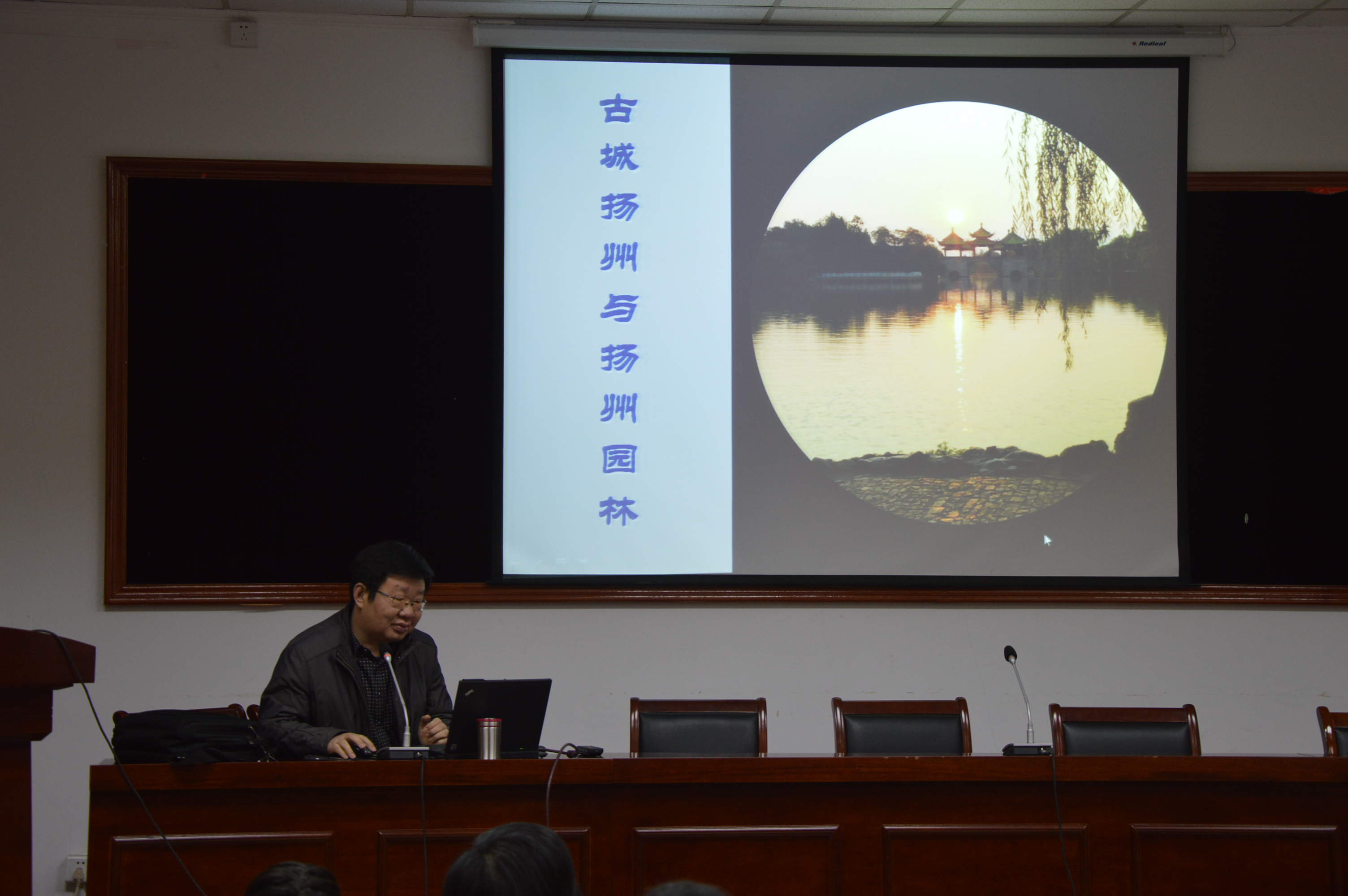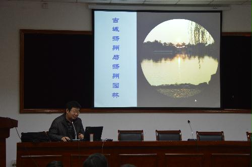 1月16日,学院建筑系张伟主任为同学做了题为《古城扬州与扬州园林》的报告,他将扬州园林与苏州园林做了对比,分析了两者之间的异同,进而让同学们更加深入地了解了扬州园林文化,了解了古城扬州。