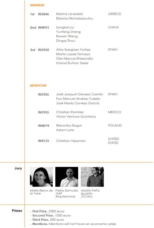 INNATURE竞赛由西班牙OPENGAP机构每年举办一次,是面向国际建筑师、设计师及相关专业学生的设计大赛。此次共收到来自世界各国的300多件作品,经过三轮评选,来自中国、美国、希腊、西班牙、波兰等国的七件作品入围,最终组委会从中评选出前三名及四份提名奖作品。