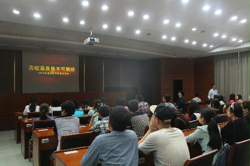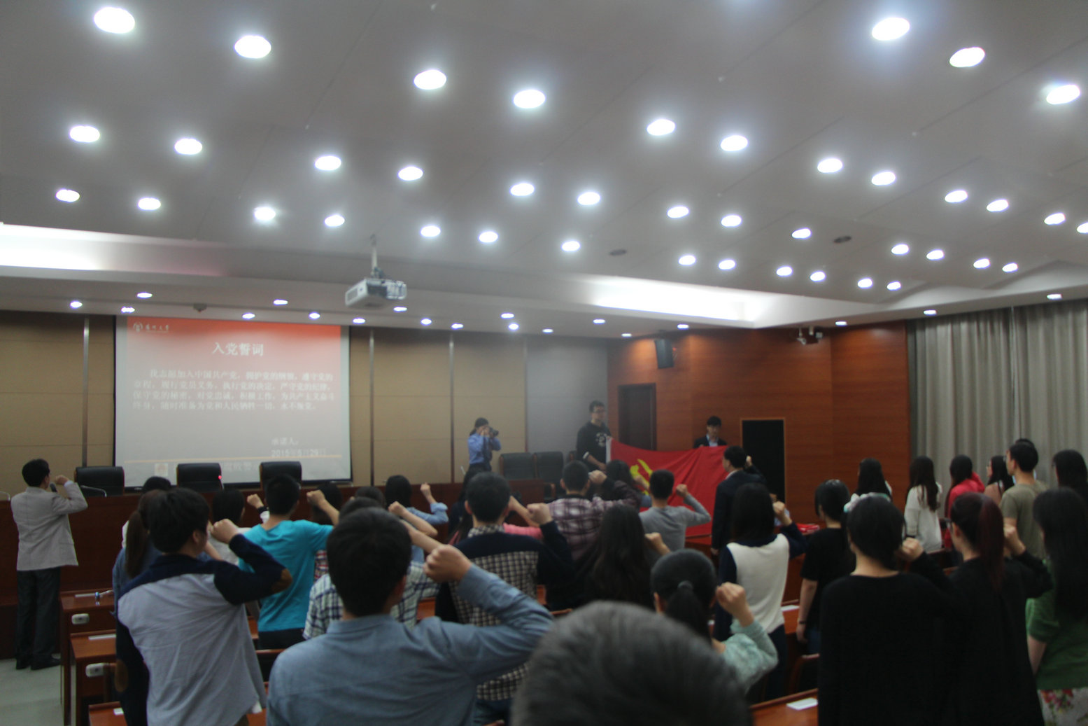 随后,全体师生党员在基地的报告厅开展了廉洁教育主题活动,身陷囹圄官员们的现身说法的教育片警醒了在场的所有党员。在院党委王晖副书记的带领下,全体师生党员重温了入党誓词,进一步确立了自警、自醒、自省、自律的党性要求。最后院党委卜以江书记对学院领导班子、中层干部及教师、全体毕业生党员提出了廉洁要求要求,他表示,领导班子要以“三严三实”为,模范履行党风廉政建设各项要求;学院党员教师要铭记岗位职责,在教书育人、社会服务的过程中,要时时处处严以律己;毕业生党员今后从事相关行业要时刻保持清醒头脑,警钟长鸣,真正做到遵纪守法、防微杜渐、忠于职守。