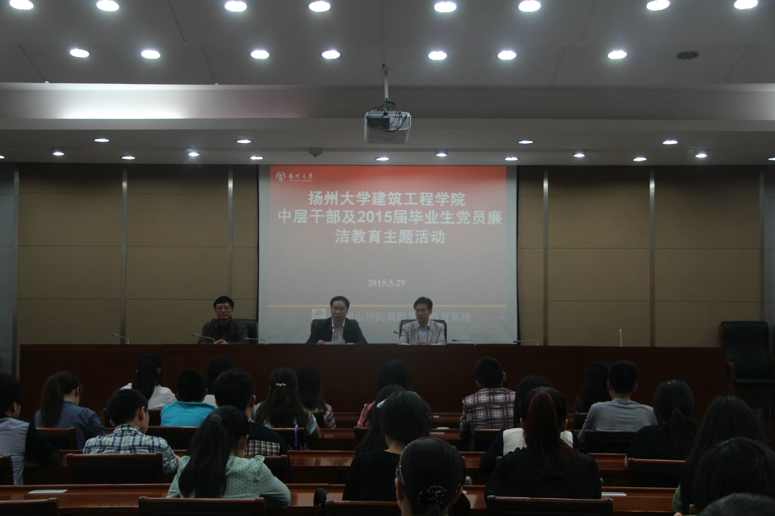 近日,建筑科学与工程学院全院中层干部、2015届毕业生党员在院领导的带领下前往扬州市预防腐败警示教育基地开展廉洁教育活动。