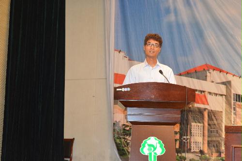 随后,教师代表张兵老师,老生代表、院社团联合会主席芮静文同学,2015级研究生代表王佳俊同学,本科生代表房洋洋同学先后发言。张兵老师在发言中希望全体新同学能够理解大学生活的意义,感悟做人的学问,从而度过大学的第一个关口,以饱满的姿态迎接未来的挑战。芮静文同学与学弟学妹们一起分享了自己大学生活的经验与体会,希望大家能够珍惜宝贵的大学时光,不畏惧未来,不留恋过往,悦纳自己和身边的每一个兄弟姐妹,肩并肩迎接新的挑战。王佳俊、房洋洋同学代表新同学表态,以先人为坐标,以学长、学姐为榜样,牢记领导,老师和父母对自己的教诲,树立远大目标,为学校、为国家美好的明天努力拼搏。